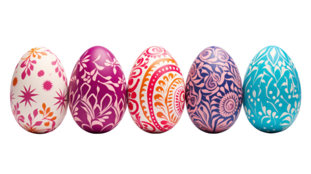 Five Easter Eggs with Colorful Polka Dots and Stripes Pattern for Festive Decoration transparency background