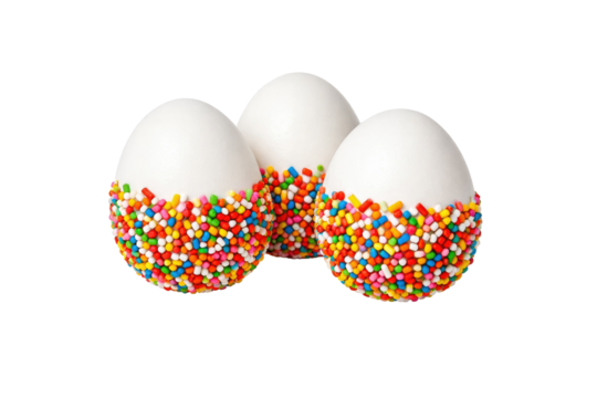 Decorated Easter Eggs with Colorful Sprinkles for Easter Holiday Celebration. Solid white background and no background