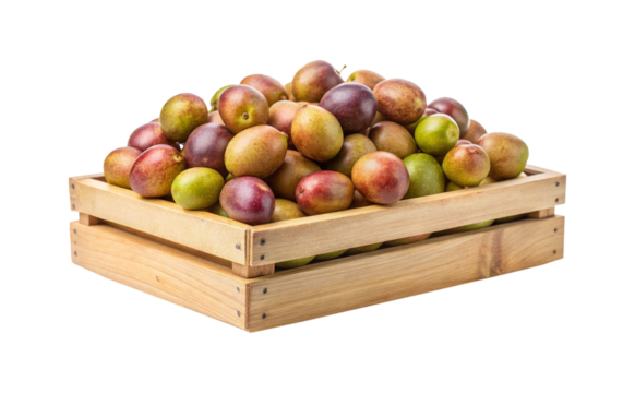 Wooden crate filled with delicious fresh Pluots, a hybrid of plum and apricot