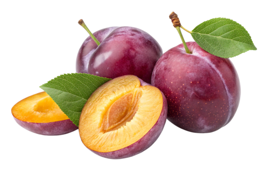 Sweet and Ripe Plum with isolated on transparent background