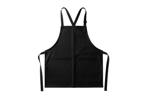 Black apron kitchen cooking chef professional adjustable pockets restaurant barista bbq work a transparent background.