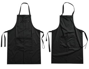 Black cooking apron with brown pocket area, ideal for chef, baker, barista uniform, workwear, food service, transparent