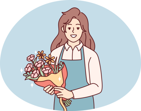 Cheerful cartoon girl with red hair and glasses, wearing yellow shirt and blue apron, pointing with smile. This playful character embodies fun and friendly vibe