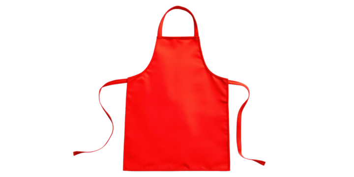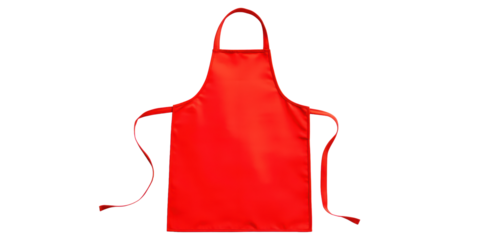 A Realistic Bright Red Bib Apron for Cooking or as a Professional Staff Uniform for a Chef or Barista, Isolated on a Transparent Background.