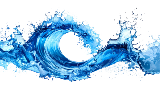 Water splash explosion creating dynamic liquid droplets, clear fluid spray, and fresh, vibrant motion on transparent background