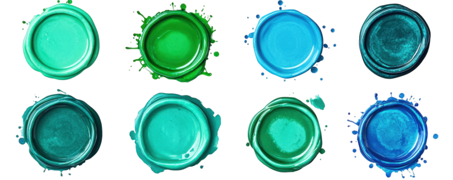 Pack of Green Paint Swatches Texture Color and Shades set against transparent background