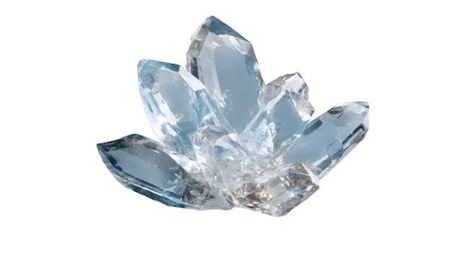 Aquamarine crystal cluster, isolated on transparent background