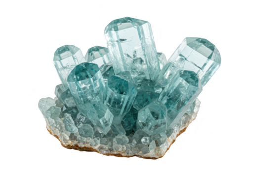 Oval aquamarine gemstone isolated PNG on transparent background, light blue faceted beryl mineral for jewelry design and gemology