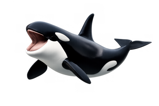 Cartoon dolphin smiling and swimming, with bubbles, on a transparent background