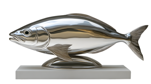 Carved stone whale, aquatic art, maritime decoration, isolated, cut out transparent