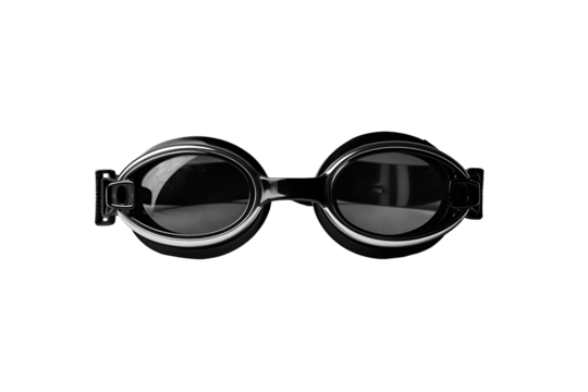 Sleek swimming goggles with iridescent lenses, isolated, conveying athleticism and professional water sports equipment on seamless bright backdrop