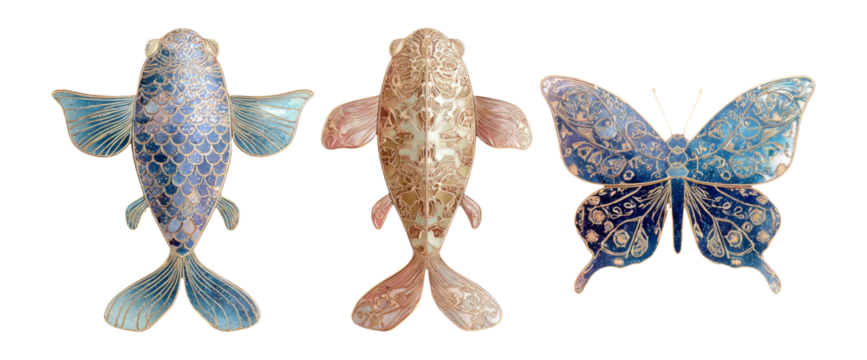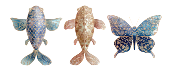 Decorative Fish and Butterfly Designs on a Transparent Background