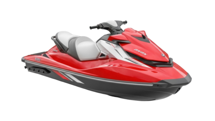 Red and gray jet ski PNG isolated on transparent background, personal watercraft for recreation and water sports