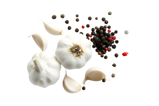 Top view garlic and pepper isolated on white --ar 3:2 --v 6.0