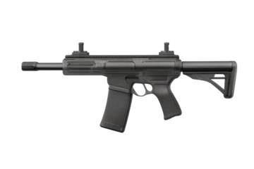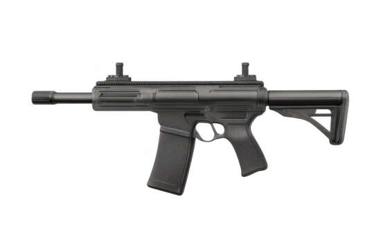 Isolated Side Profile of Tactical AR-15 Style Rifle (Transparent Background)