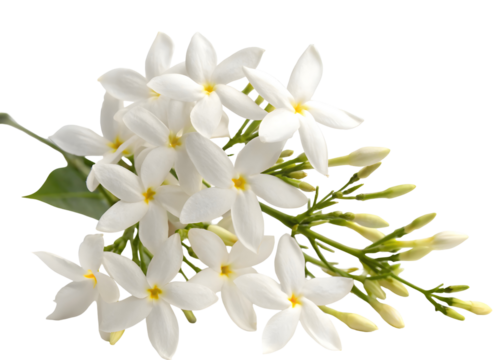 White Jasmine Flowers Bloom with Green Leaves Isolated on Transparent Background