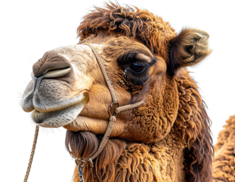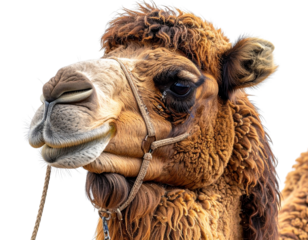 Close-Up of Brown Camel Head with Harness, isolated on transparent background png