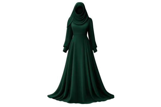Elegant Emerald Abaya with transparent background on a black backdrop