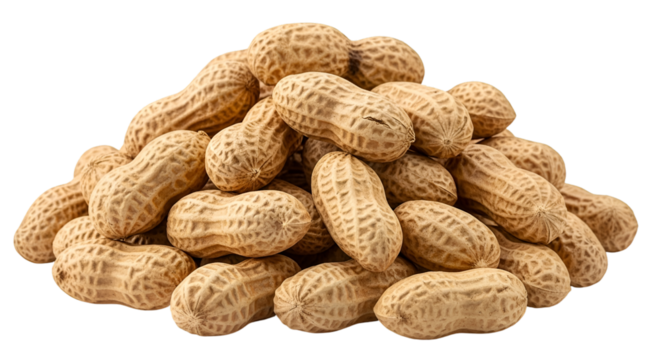 Several opened peanut shells with kernels scattered isolated on transparent background