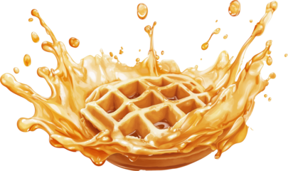 시럽이 튀어오르는 맛있는 와플의 생동감 있는 이미지