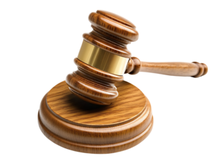 Wooden gavel on a sound block, symbol of justice, law, and legal decisions.