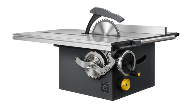 Sliding table saw with a tilting arbor and built-in scoring unit for a joinery workshop