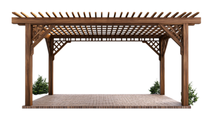 Rustic wooden pergola stands majestically against a bright backdrop inviting outdoor relaxation isolated on transparent background