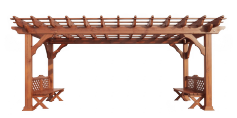 Wooden pergola with benches isolated on a transparent background garden outdoor