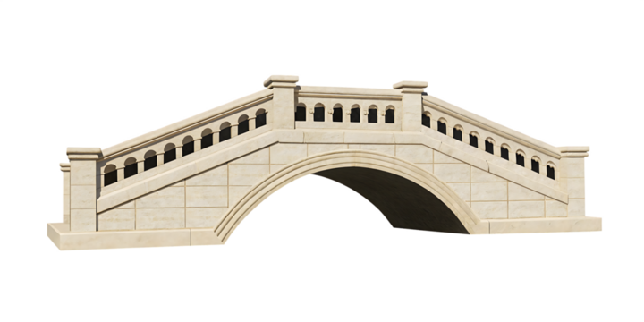 Ornate stone arch bridge with balustrade isolated on a transparent background stone bridge