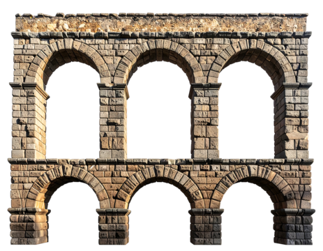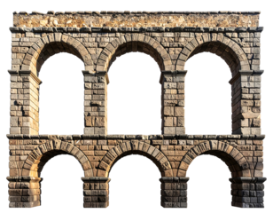 Two ancient stone ruins featuring arches and columns, isolated on transparent background