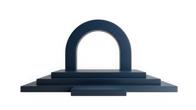Dark blue 3d rendered arch on stepped platform isolated on transparent background
