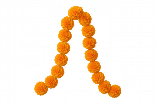 Marigold flower garland forming arch shape for festive decoration on transparent background