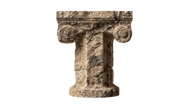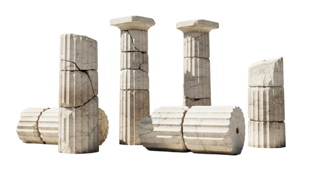 Ancient weathered stone columns and broken architectural ruins symbolizing history and endurance, perfect for historical, archaeological, or constructionrelated projects.