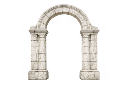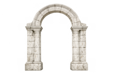 Stone archway creating an ancient marble gateway or portal, classic architecture and archaeological ruins on transparent background