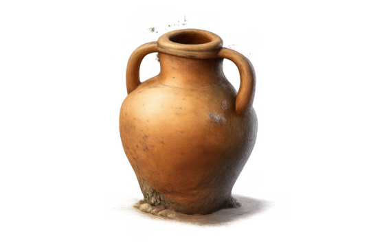 Ancient amphora isolated on transparent background, an earthenware vessel with a narrow body, pointed bottom, and two handles, showcasing timeless craftsmanship