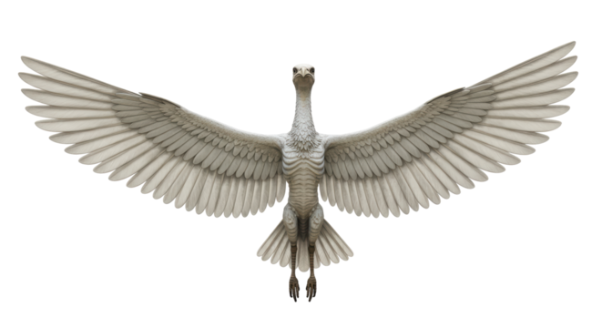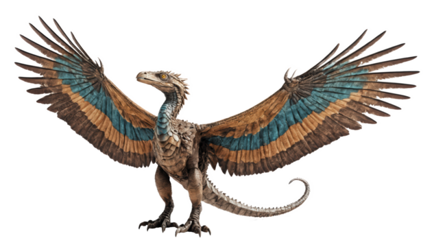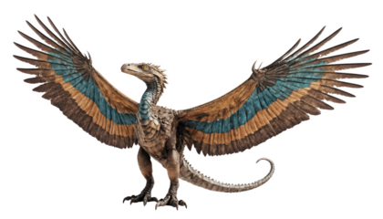 Isolated Archeopteryx Dinosaur with Feathered Wings Spread Wide