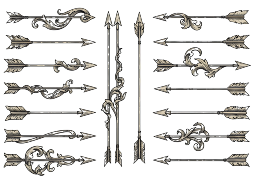 Gold Decorated Arrows Illustration On Transparent Black Background
