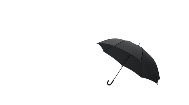A black umbrella with a sturdy handle and a smooth, curved canopy, perfect for protection against rain isolated on white background or transparent png