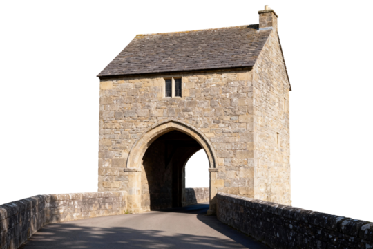 Medieval stronghold with stone walls and multiple towers, depicting history, fantasy, and ancient architecture, on transparent background