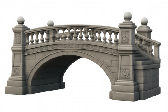 Ornate stone arch bridge with balustrade isolated on a transparent background stone bridge