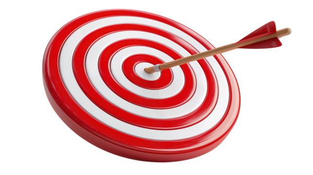 Precise arrow hitting bullseye on transparent background