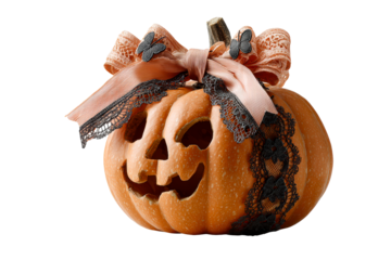 Lace and ribbon Halloween pumpkin decor
