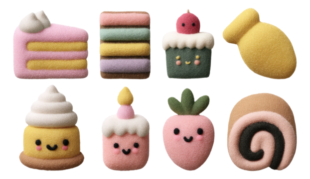Cute and Soft Plush Cake Set Isolated on Transparent Background for Sweet Decor