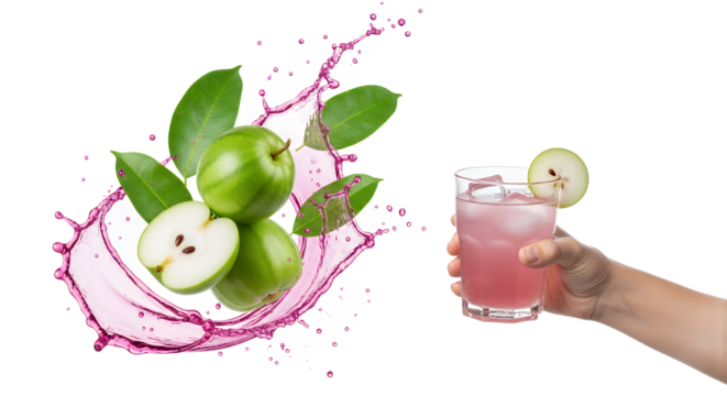 Refreshing Pink Drink with Green Apple Slices and Splash