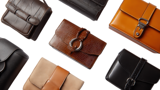 Designer Leather Handbag Set Isolated Transparent Background.