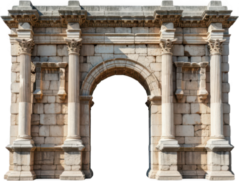 Ancient Stone Gateway with Columns and Architectural Details, PNG