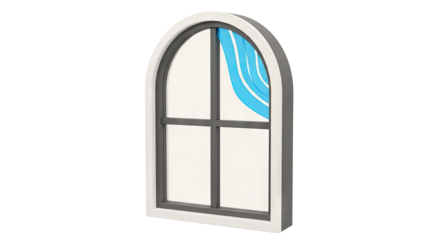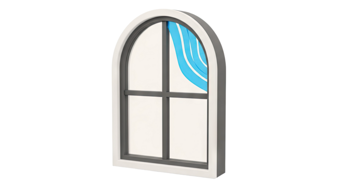 Arched Window with Blue Wave Design