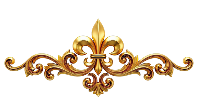 Fleur-de-lis and rose ornament in silver wrought iron style, decorative classic architectural element on transparent background