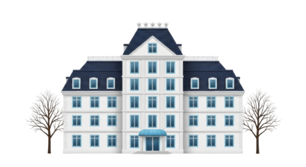 Isolated hotel exterior vector graphic, classic architecture facade with ornate details