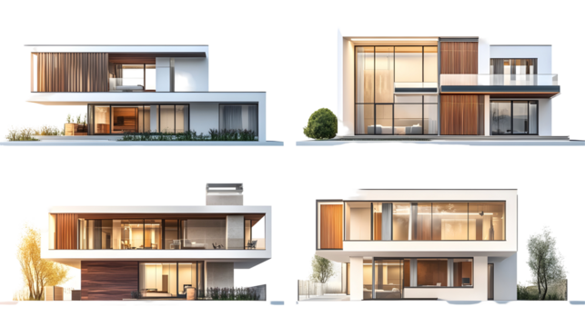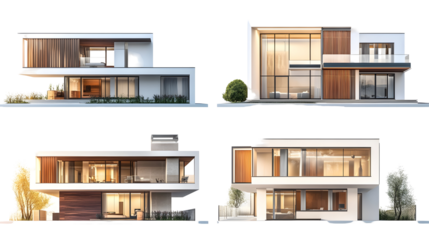 Modern house 3D icon collection, real estate and architecture theme, high-quality render, Transparent Background PNG